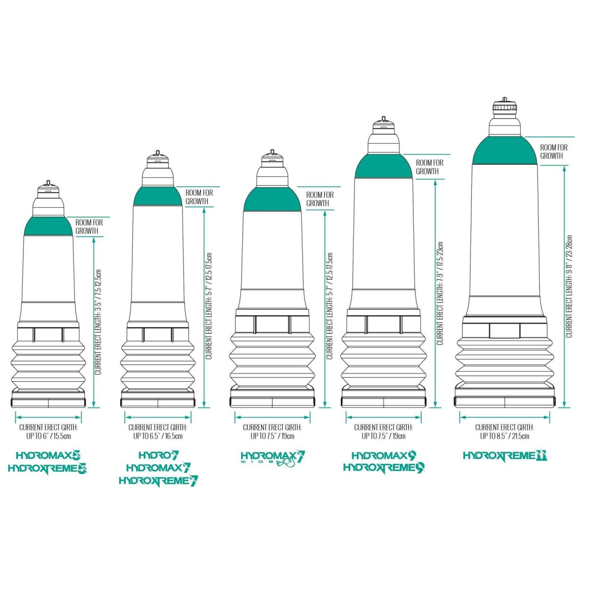 Note: The Bathmate HydroXtreme 7 Wide Boy is extremely powerful against conventional pumps, so care must be taken when using it. The device is designed for more advanced users. For beginners, we recommend creating pressure slowly and increasing the load gradually. Suitable for penis length from 12.5 to 18 cm, diameter up to 5.5 cm.