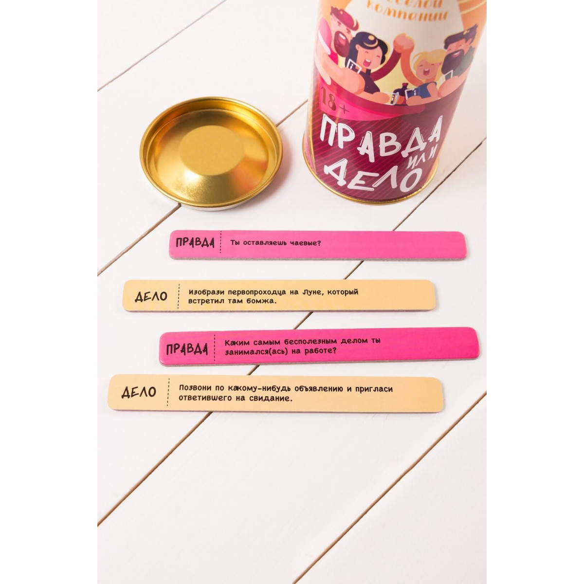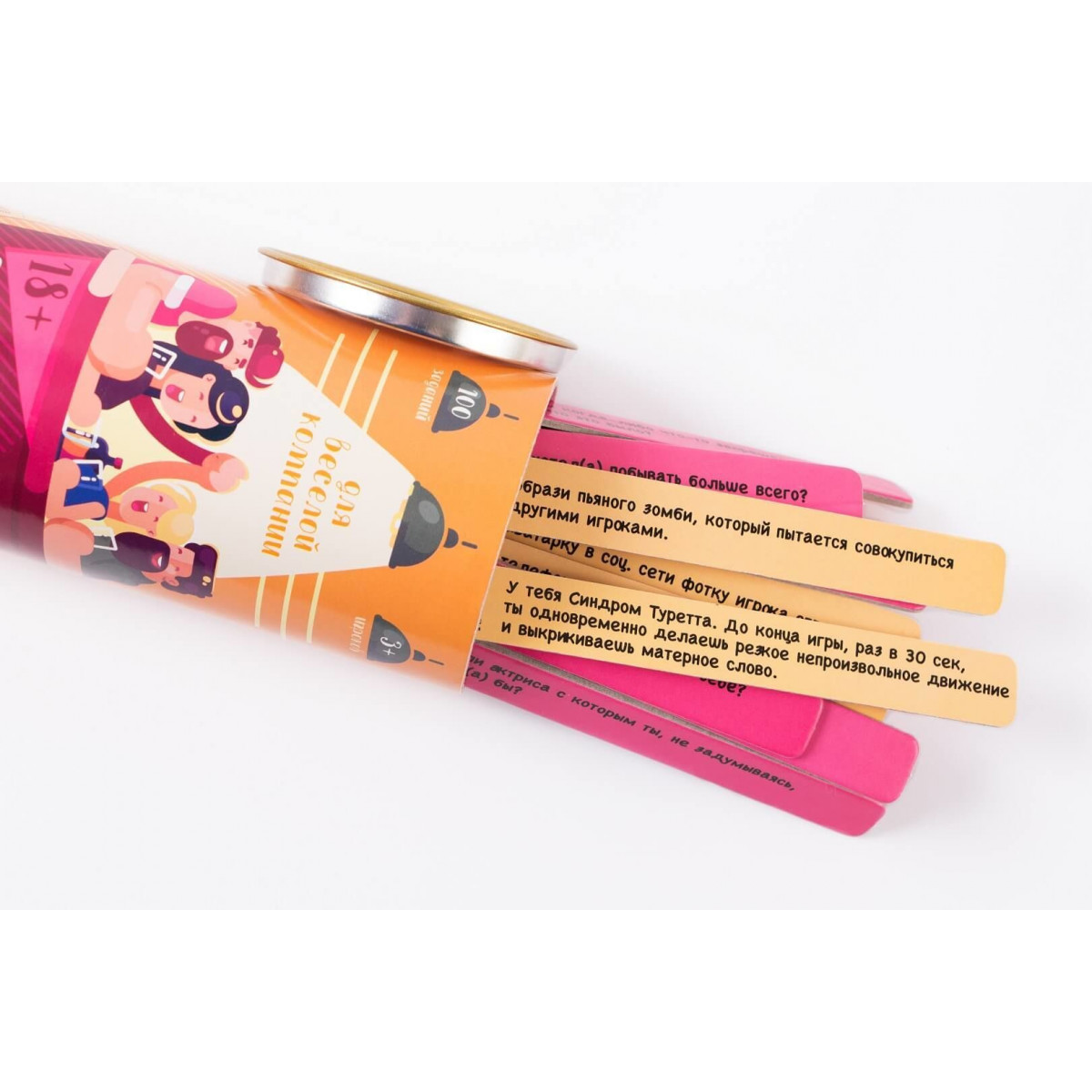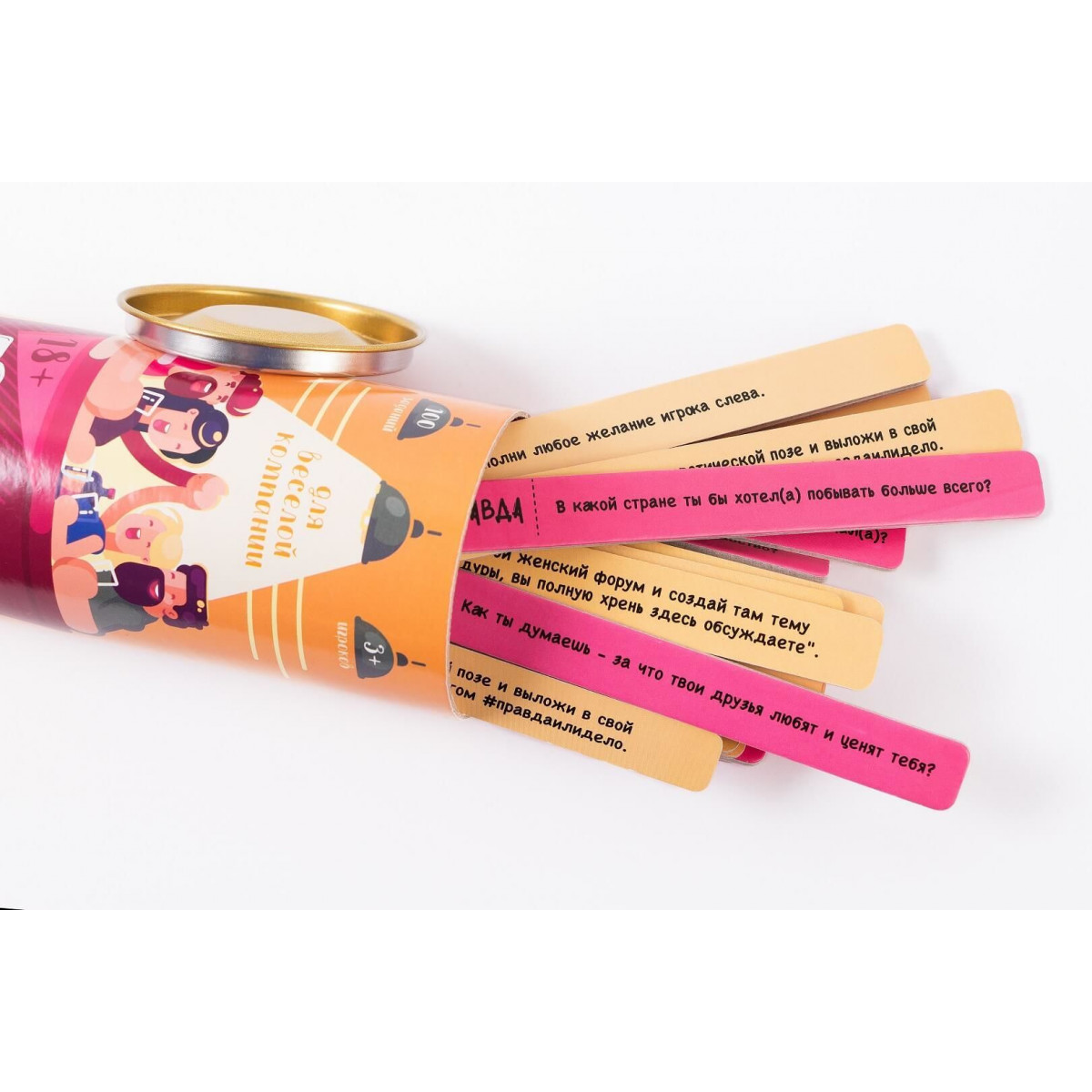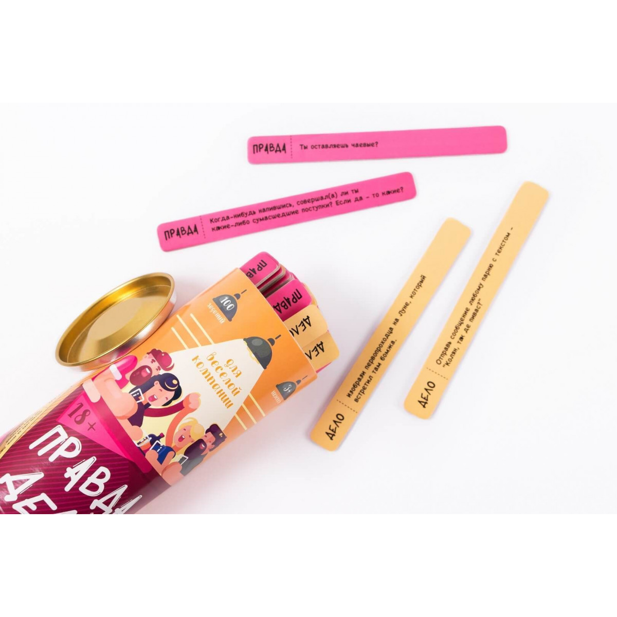 Rules summary: You take turns asking each other «Truth or Action?». If you chose «Action» - pull the stick and perform tasks on its white side. «Truth» - you need to answer the question from the pink side.