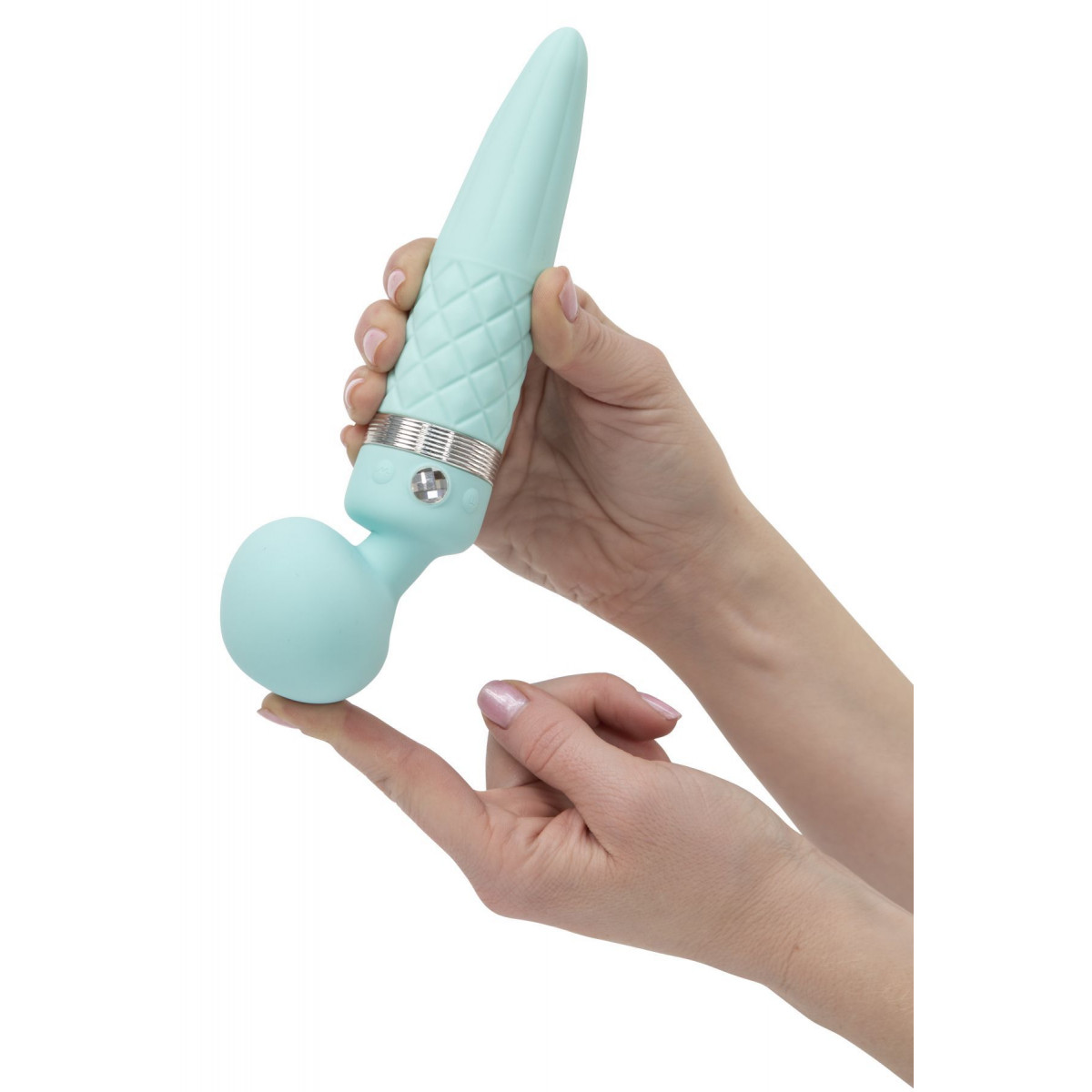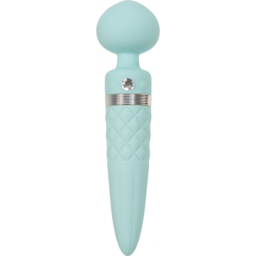 We offer to buy the PILLOW TALK - Sultry Teal vibrating massager - a luxurious massager of an improved shape with a heating function and a beautiful decoration - a real Swarovski crystal. Elegant design, convenient control and dual use (vibration of the head + rotation of the handle) - this vibromassager is created for the highest pleasure.